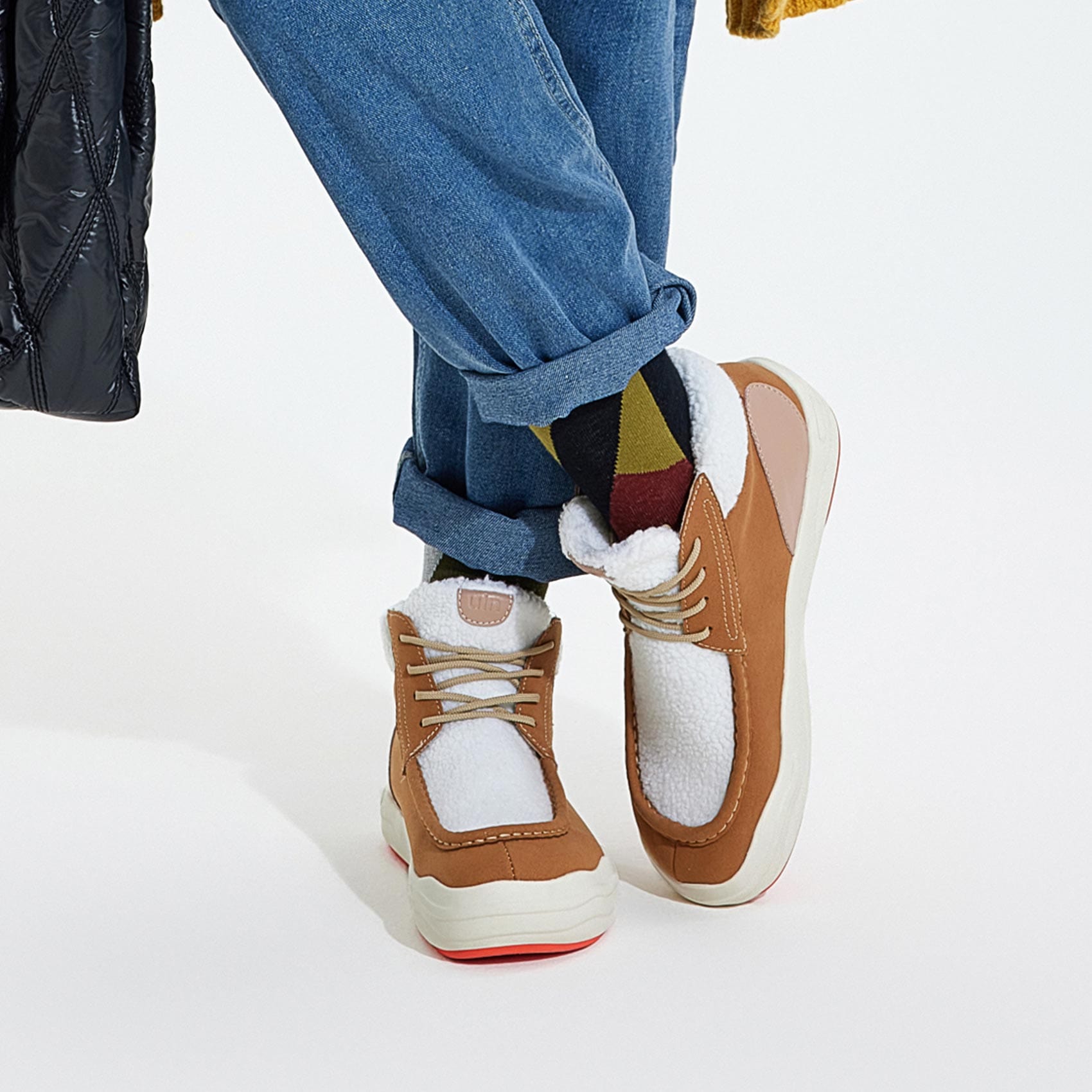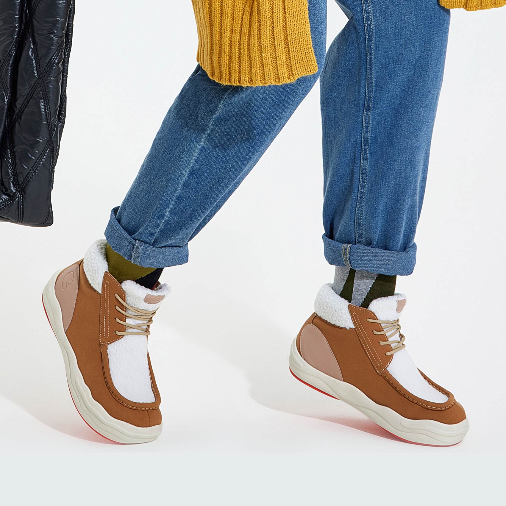 Microfiber Suede & Faux Sherpa Fleece Upper
