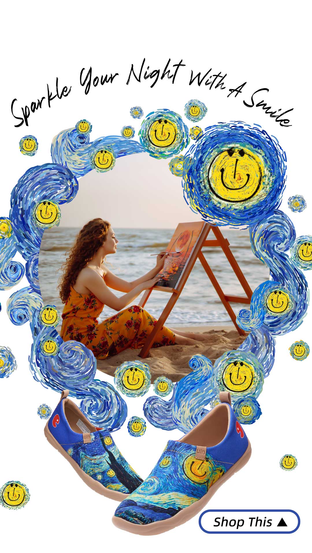 Following the footsteps of Van Gogh, not only can we enjoy the silence of the night sky, but also the brilliance of the stars, while the power of smile is also the finishing touch to light up the silent night. Smile as much as you can, the unhappiness of the day will fade away with it.